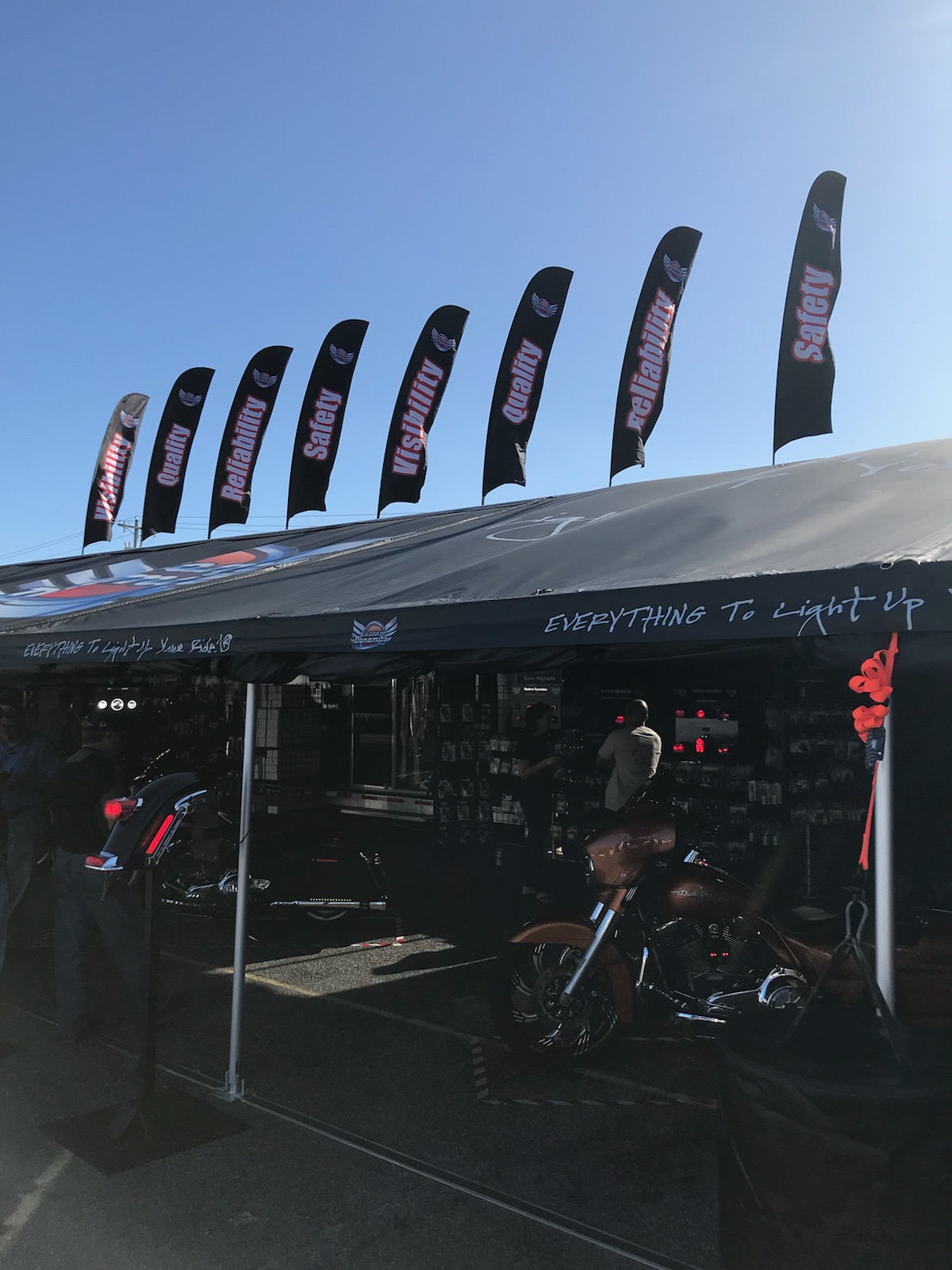 Our 16ft Double Sided Feather Flags mounted to the top of Custom Dynamic's awesome trailer! Find out more about Custom Dynamics at www.customdynamics.com