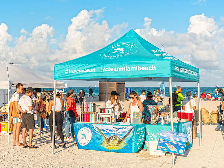 Clean Miami Beach is dedicated to keeping their community and natural habitats free of garbage and harmful pollutants with a focus on single-use plastics. An amazing non-profit organization and we're grateful for such a great photo of their 10x10 Custom Tent & Custom Table Covers being used to draw attention to their important mission.