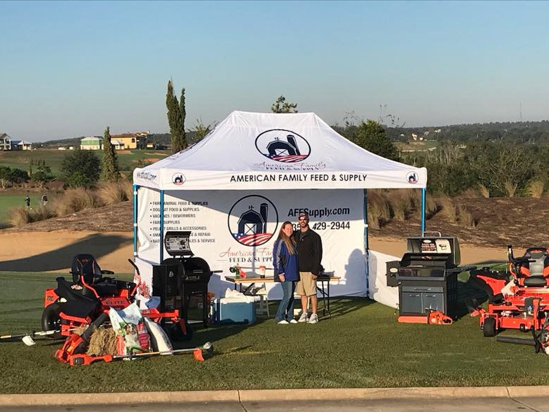 Check out the awesome Pop Up Tent tent we made for the guys at American Family Feed & Supply in Groveland Florida. When they had a golf event to attend, they wanted to make sure their tent was up to par.