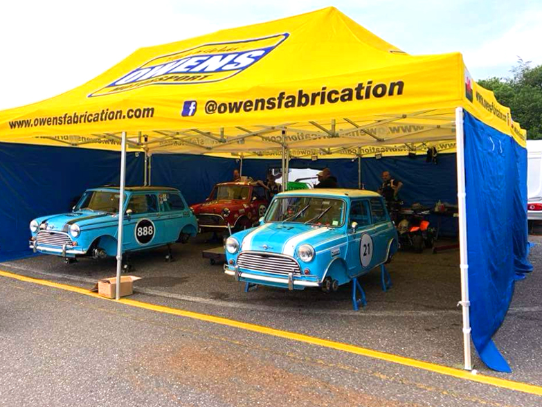If our largest Custom Tents still aren't big enough for what you need, why not combine two! Check out this 20ft x 20ft space created by combining two 10ft x 20ft tents, complete with six full height 10ft stock blue walls to protect the mechanics and drivers from any wind and rain!