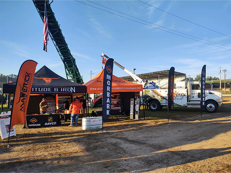 Thanks to Maverick Environmental Equipment for sending in these event photos - the bold tent designs and striking colors look absolutely incredible! The 13ft x 13ft Pro Expo tents provided 170 sq ft of coverage each, and Maverick completed their event setup with 11.5ft Double Sided Feather Flags and 6ft Custom Table Covers.