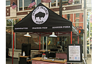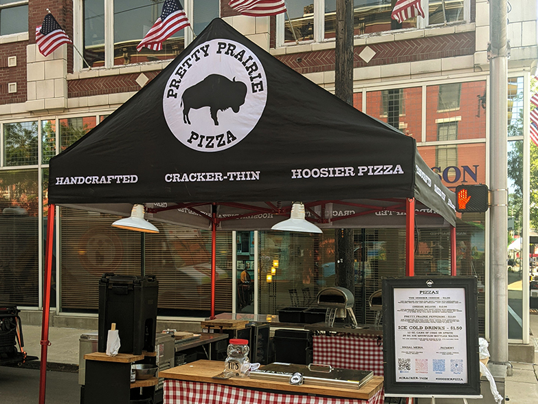 When it comes to outdoor events and promotions, a reliable canopy is essential for both protection and aesthetics. Instant Promotion's Cabin Style Canopies have been making waves in the market, offering a perfect blend of elegance and functionality. One standout feature of these canopies is their innovative design that ensures efficient water shedding. Say goodbye to worries about rainwater pooling or leaks during sudden downpours. With their cleverly engineered roofline, rainwater is swiftly channeled away, keeping you and your belongings dry and comfortable. As one can see from images below, submitted by our great customers at Pretty Prairie Pizza, the cabin frame protected them from the weather elements while other vendors experienced issues. Eric from Pretty Prairie Pizza had this to say about his Cabin Canopy. “This thing is a beast. People love it. Recently, we were set up tent to tent at a farmers market when a storm moved in and poured down some much needed rain. I watched tents around us collapse under the weight of the water. Our tent never budged.”