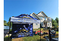 Another great photo sent in by a happy customer! This 6.5x10 "Impact Package" Custom Tent design features a full color sublimation printed canopy with a full height 10ft wide back wall. Storm King took full advantage of our unlimited dye sub printing by creating a full edge to edge print design that looks amazing!