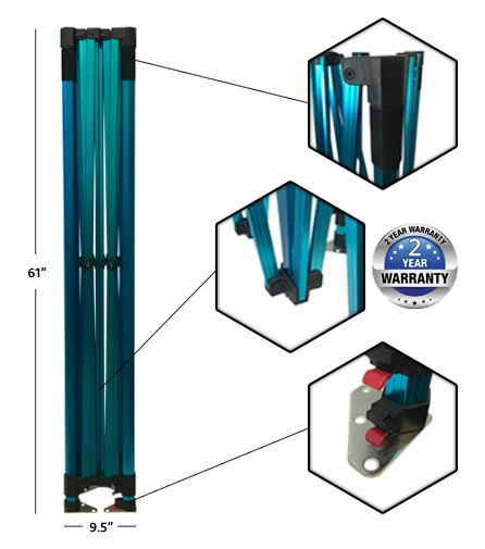The Pro Expo Compact Frame sets the standard for heavy-duty, compact, professional tent frames. Gone are the days of buying a new tent every few months - the Pro Expo is built from the finest aluminum components and the stands on ultra strong 2" hex shaped legs.